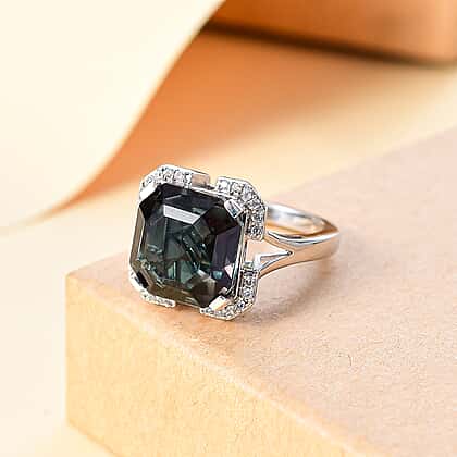 Alexandrite Triplet Quartz & White Zircon Ring in Rhodium Overlay Sterling Silver 7.95 Ct.