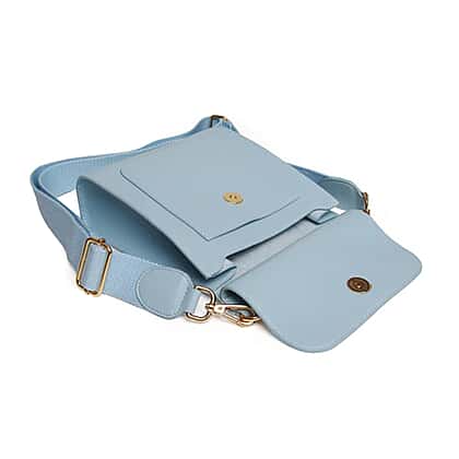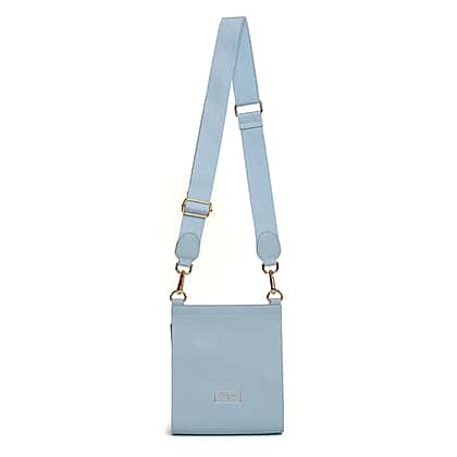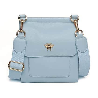 Alice Wheeler London Bloomsbury Vegan Leather Crossbody Bag - Adjustable Strap & Bee Insignia - Pastel Blue