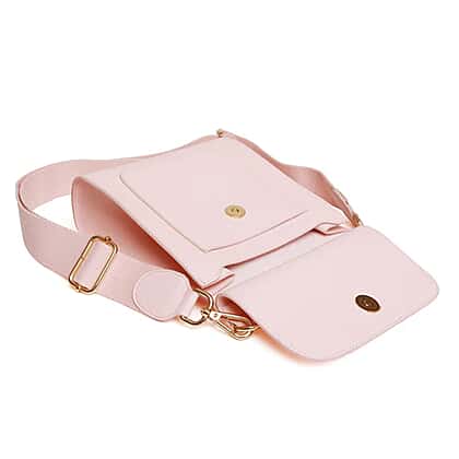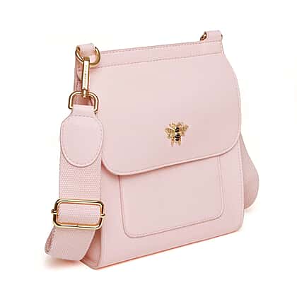 Alice Wheeler London Bloomsbury Vegan Leather Crossbody Bag - Adjustable Strap & Bee Insignia - Pastel Pink