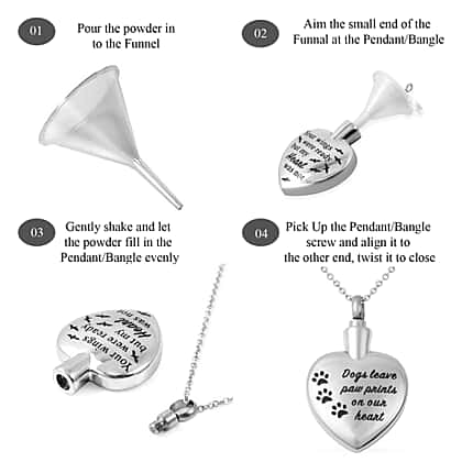 • Funnel and needle ensure the ashes of your pet lands into the pendant
