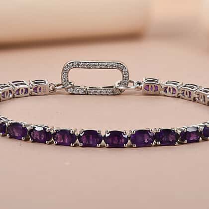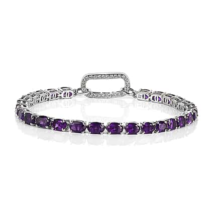 11.90 Ct. Amethyst and Simulated Diamond Bracelet (Size - 7.25) in Platinum Plated Sterling Silver