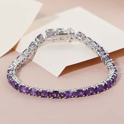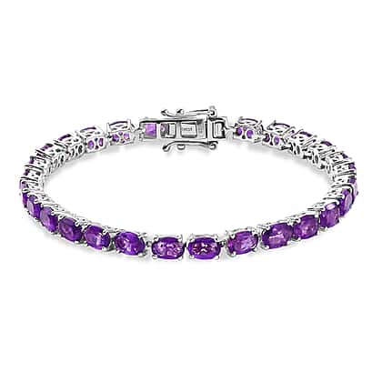 Amethyst Bracelet (Size - 7) in Platinum Overlay Sterling Silver 12.34 Ct, Silver Wt. 9.65 Gms