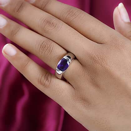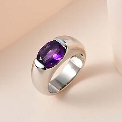 Amethyst Ring in Platinum Overlay Sterling Silver 2.27 Ct, Silver Wt. 6 Gms