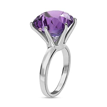 Amethyst Solitaire Ring in Platinum Overlay Sterling Silver 10.06 Ct