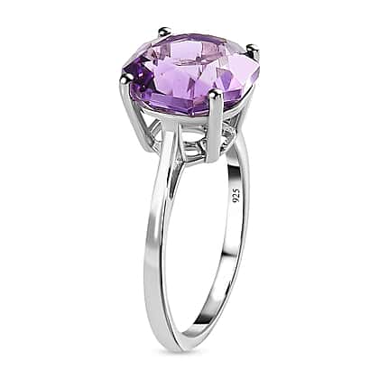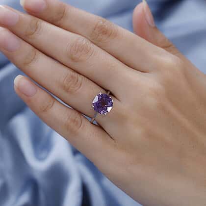 Amethyst Solitaire Ring in Platinum Overlay Sterling Silver 3.99 Ct.