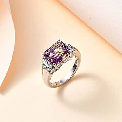 Ametrine & Natural Zircon Ring in Rhodium Overlay Sterling Silver 3.90 Ct