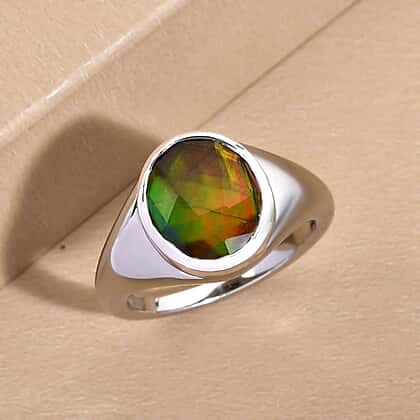 Ammolite Solitaire Ring in Platinum Overlay Sterling Silver 2.65 Ct.