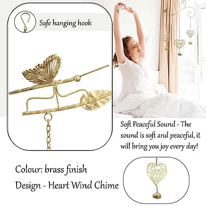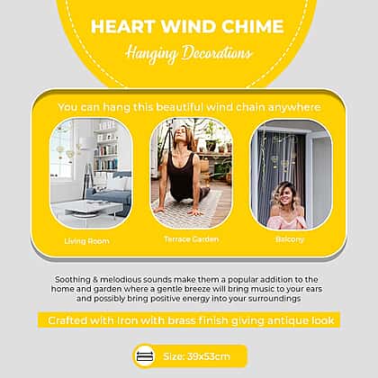 Immerse yourself in the sweet melodies of our Heart Wind Chime with Miniature Bells. Crafted with love and adorned with three designer hearts, this wind chime captures the essence of romance. The exquisite Brass Antique finish adds a touch of vintage charm to any outdoor space. Its delicate miniature bells create a symphony of soothing sounds that serenade the senses. Made from durable iron, this wind chime withstands the test of time, ensuring long-lasting beauty and joy. Let the Heart Wind Chime with Miniature Bells to fill your surroundings with love and harmony.