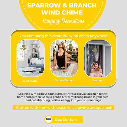 Sparrow and bell wind chimes Colour - Brass Antique (Size - 25x40cm)