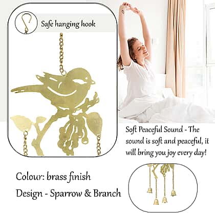 Antique Look Brass Finish Metal Wind Chime - Sparrow