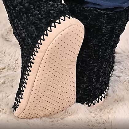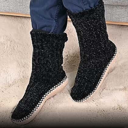 Keep your feet warm and cosy with these anti-slip indoor knitted slippers with fur lining. Made of acrylic, these slippers provide additional relief, reduce sweating and non-slip comfort. The elasticised cuffs keep the socks in place and the knitted pattern maintains a snug fit. The base of the slippers comes with non-slipping material to ensure easy walking across the home.