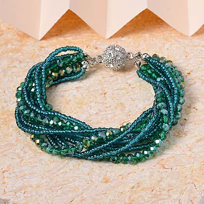 White Crystal , Green Crystal Bracelet (Size - 7.5) 0.02 ct 0.020 Ct.