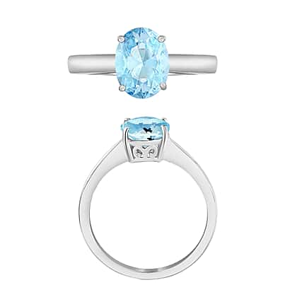 Aquamarine Solitaire Ring in Platinum Overlay Sterling Silver 1.540 Ct