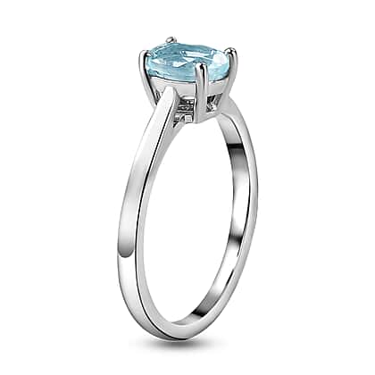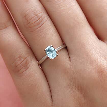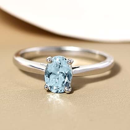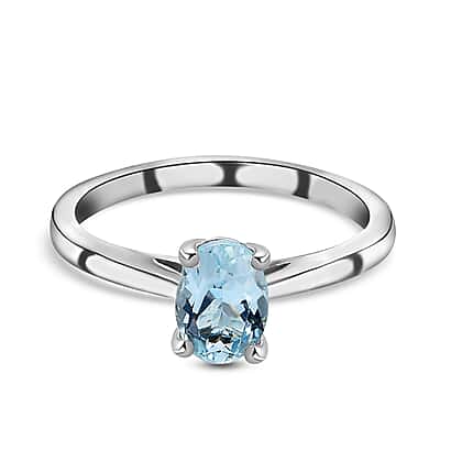 Solitaire Aquamarine Ring in Platinum Plated Sterling Silver