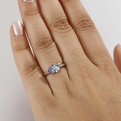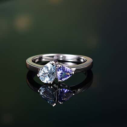 Aquamarine & Tanzanite Solitaire Ring in Rhodium Overlay Sterling Silver 1.09 Ct.