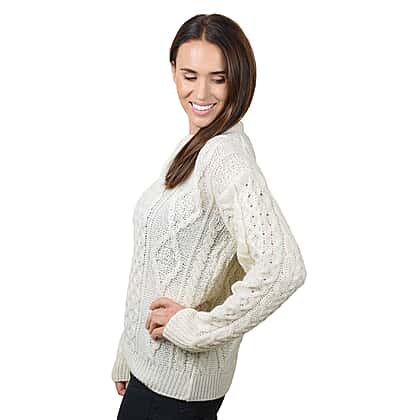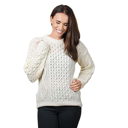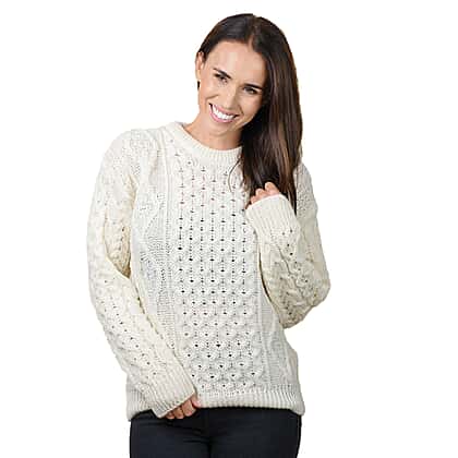 Aran 100% Pure New Wool Women's Sweater (Size M) - Mustard