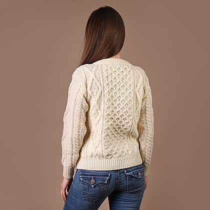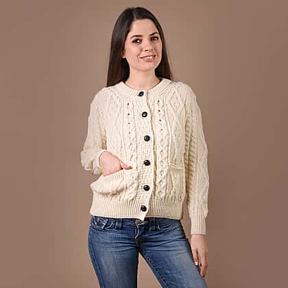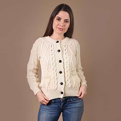 Aran Pure Wool Heritage Women's Cardigan - Cream
