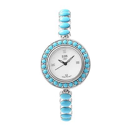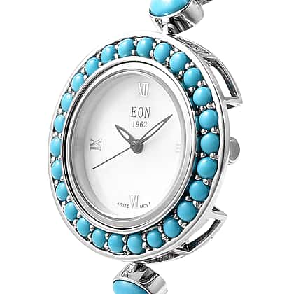 - SETTINGS - Delightful straps of the watch are embellished with turquoise in bezel setting