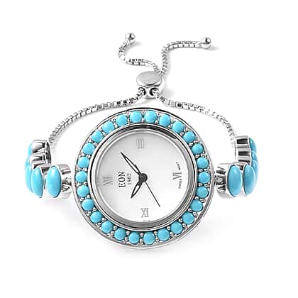 Arizona Sleeping Beauty Turquoise Adjustable Bracelet Watch (Size 6-8) in Sterling Silver