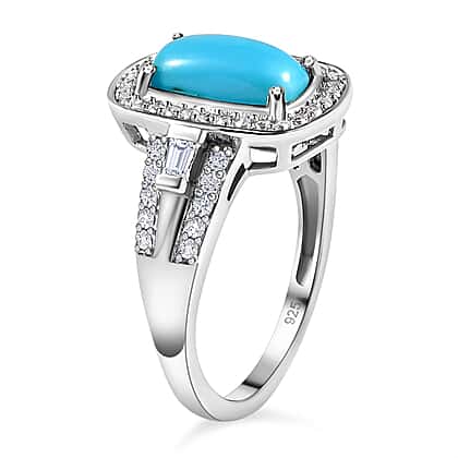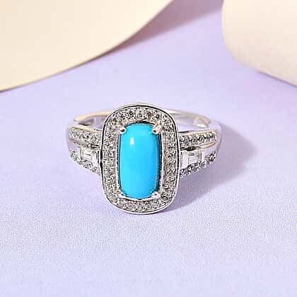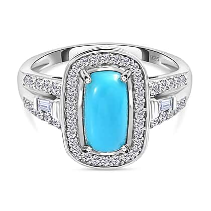 Arizona Sleeping Beauty Turquoise and Natural Zircon Halo Ring in Platinum Overlay Sterling Silver 2.18 Ct