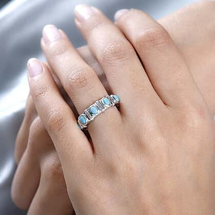 This birthday, surprise her with this Arizona Sleeping Beauty Turquoise Band Ring. The ring is set in Sterling Silver and bears the luxurious finish of Platinum Overlay. Each of the nine gemstones flaunts a cabochon cut and looks spectacular seated inside a silver bezel. The oval-shaped blue gemstones have a flawless facade and create an impressionistic view of the sky on your fingers.