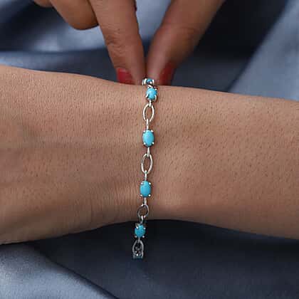 3 Ct. Sleeping Beauty Turquoise Line Bracelet in Platinum Plated Sterling Silver