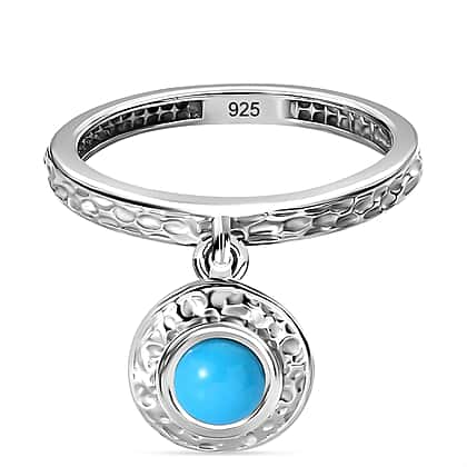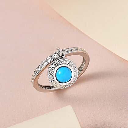 Arizona Sleeping Beauty Turquoise Charm Ring in Platinum Overlay Sterling Silver
