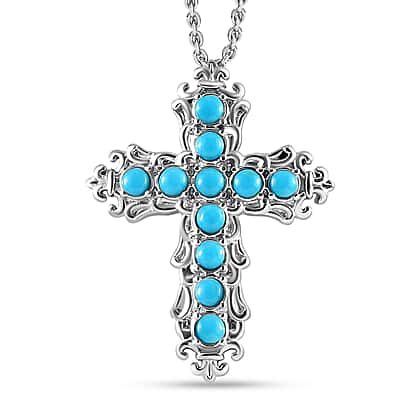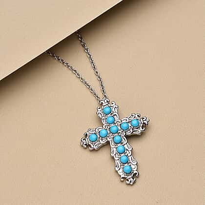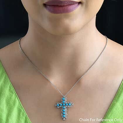 Arizona Sleeping Beauty Turquoise Cross Pendant with Chain (Size 20) with Magnetic Clasp in Stainless Steel 1.350 Ct