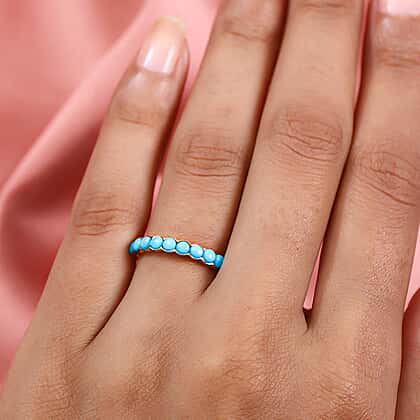 Arizona Sleeping Beauty Turquoise Half Eternity Ring in 14K Gold Overlay Sterling Silver
