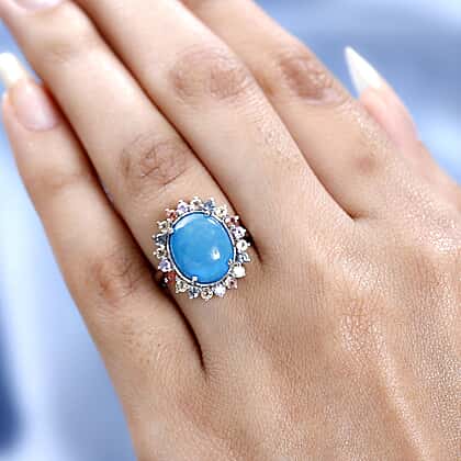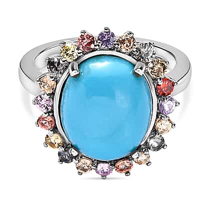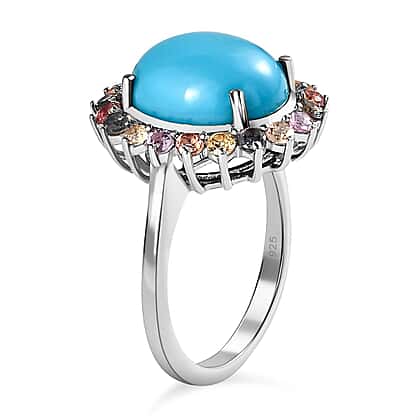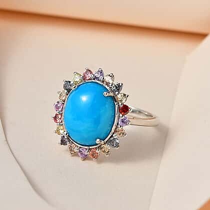 Sleeping Beauty Turquoise and Multi Sapphire Ring in Platinum Overlay Sterling Silver
