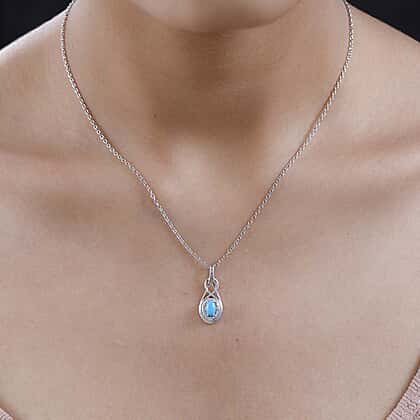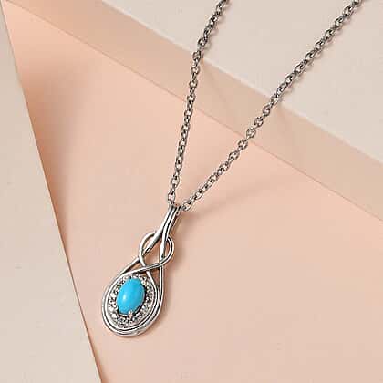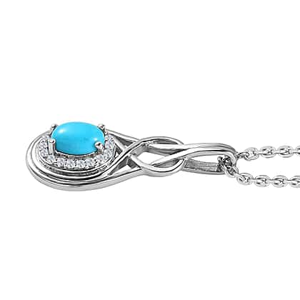 - Infinity-theme pendant studded with a vivid Sleeping Beauty Turquoise Oval of 6x4mm.