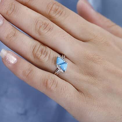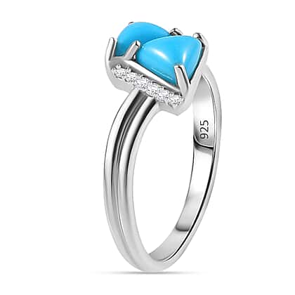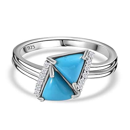 Arizona Sleeping Beauty Turquoise & Natural Zircon Traiangle Ring in Platinum Overlay Sterling Silver 1.17 Ct.