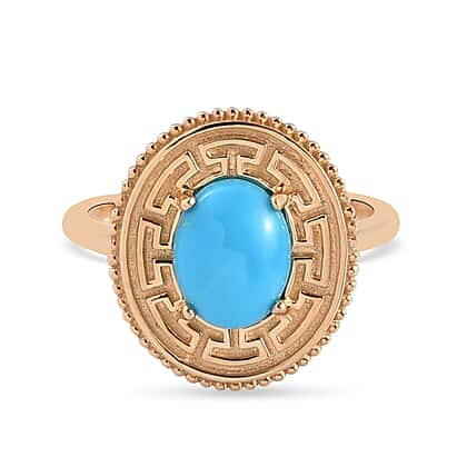 Greek Key Inspired Sleeping Beauty Turquoise Ring in Gold Plated Sterling Silver