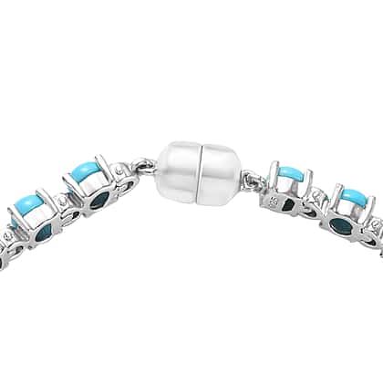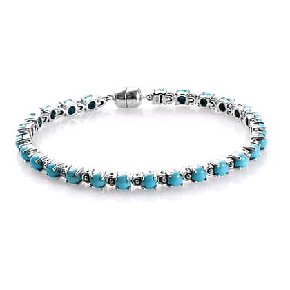 Arizona Sleeping Beauty Turquoise (Rnd) Bracelet (Size 8) with Magnetic Lock and Safety Clasp in Platinum Overlay Sterling Silver 8.25 Ct, Silver wt 11.52 Gms