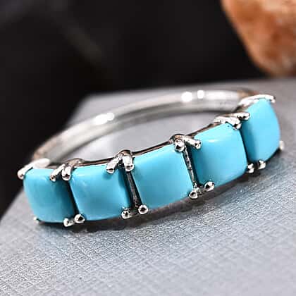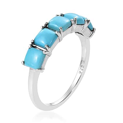 Arizona Sleeping Beauty Turquoise (Sqr) Five Ring in Platinum Overlay Sterling Silver 1.25 Ct.