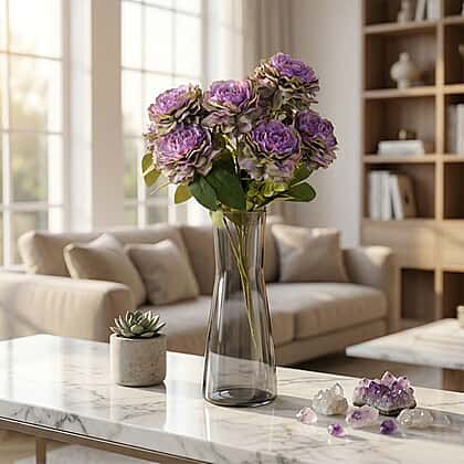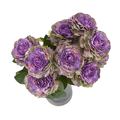 9-Heads Artificial Flower Bush (43cm) - Purple