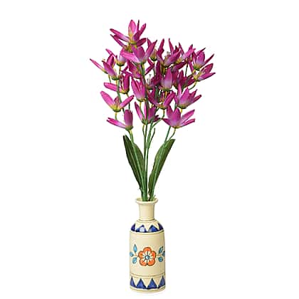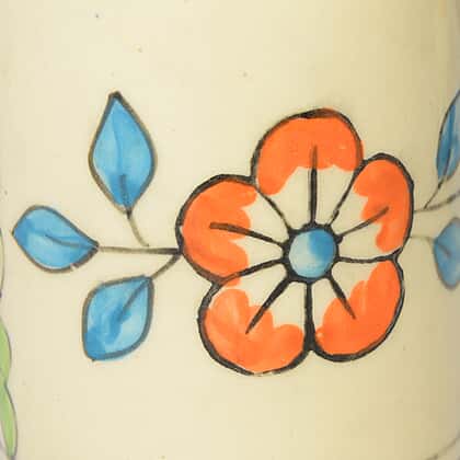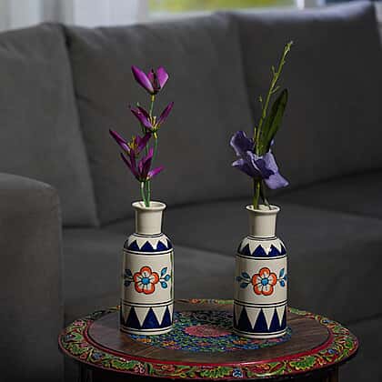 Set of 2 - Traditional Floral Printed Ceramic Vase - Cream, Blue & Multi