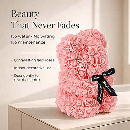 Gift a timeless expression of love and companionship with this Handcrafted Faux Rose Flower Bear with Bow. Beautifully crafted with delicate faux roses, this adorable teddy bear exudes charm and elegance. Made with PE plastic and paper materials, it ensures a lasting shape and vibrant look. The elegant bow adds a sophisticated touch, making it an ideal decorative piece for special occasions like birthdays, anniversaries, or Valentine's Day. Presented in a transparent gift box, it’s ready to impress as a thoughtful gift or keepsake that brings joy to any setting.