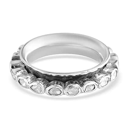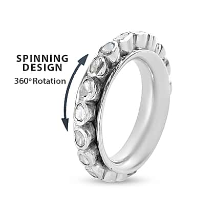 1 Ct. Polki Diamond Fidget Spinner Band Anxiety Stress Reliever Ring for Men and Women in Sterling Silver
