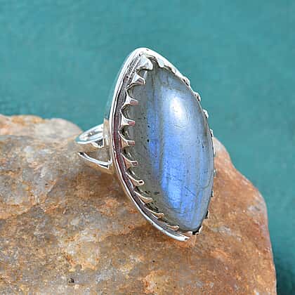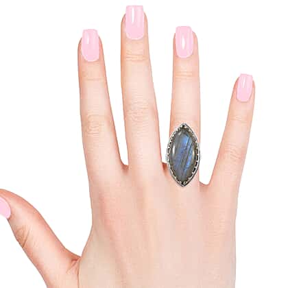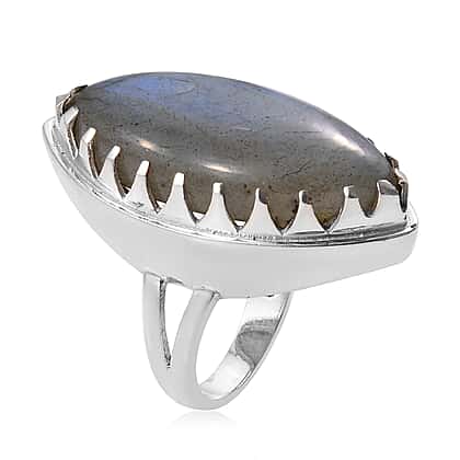 24.97 Ct Labradorite Solitaire Ring in Sterling Silver 7.60 Grams