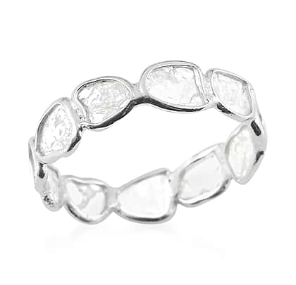Artisan Crafted Polki Diamond Eternity Ring in Platinum Overlay Sterling Silver 1.00 Ct.