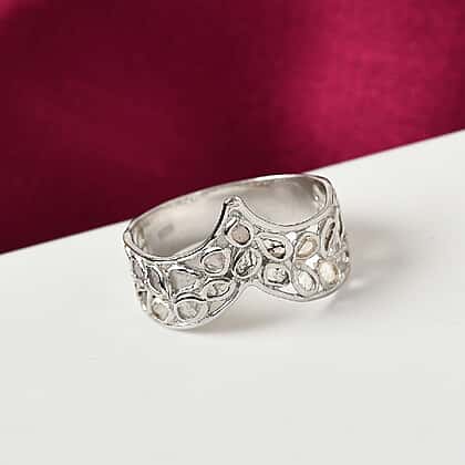 Artisan Crafted Polki Diamond Ring in Platinum Overlay Sterling Silver 1.00