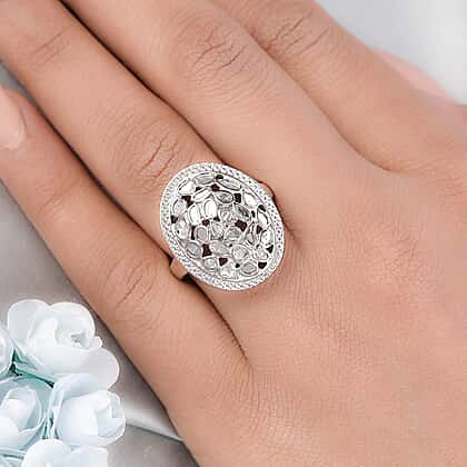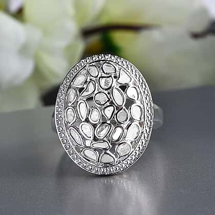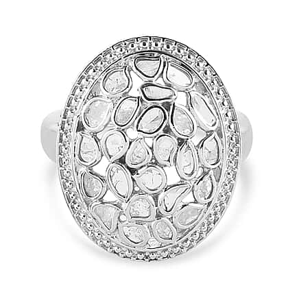 1.05 Ct Polki Diamond Ring in Platinum Overlay Sterling Silver