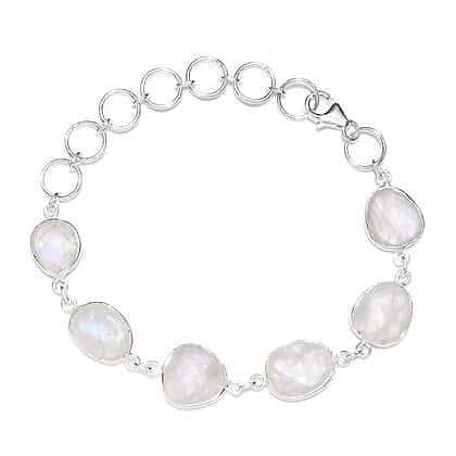 30.98 Ct Rainbow Moonstone Station Bracelet in Sterling Silver 8 Inch with Extender