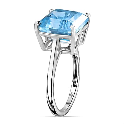 Asscher Cut Skyblue Topaz Solitaire Ring in Rhodium Sterling Silver 5.19 Ct.