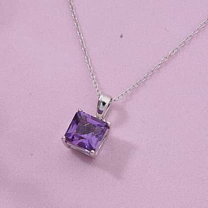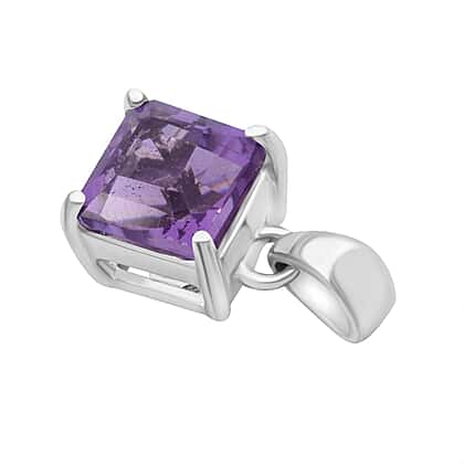 Asscher Cut Zambian Amethyst Pendant in Rhodium Overlay Sterling Silver 1.53 Ct.