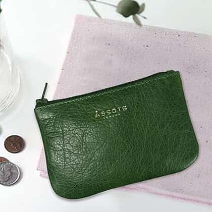 Assots London Full Grain Leather Zip Top Coin Purse (Size 12x8cm) - Green