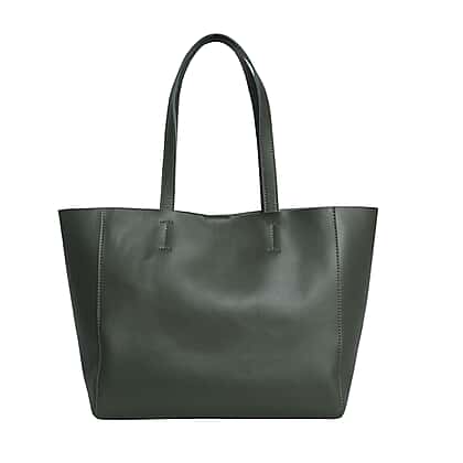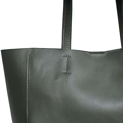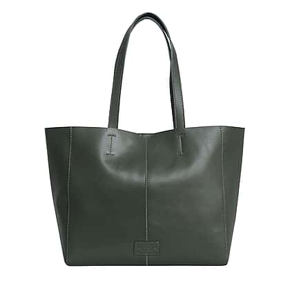Assots London Abingdon Full Grain 100% Genuine Leather Tote Bag with Magnetic Closure (Size 32x12x28cm) - Khaki