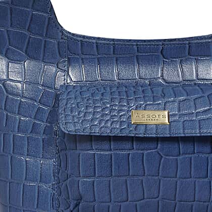 ASSOTS LONDON Genuine Leather Croc Embossed Tote Bag - Blue