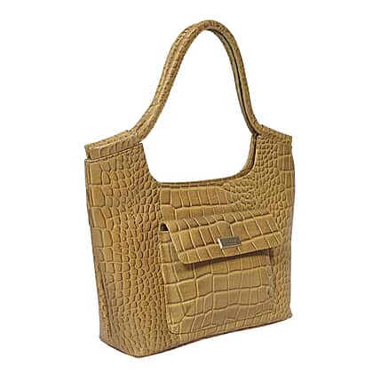 ASSOTS LONDON Amanda Genuine Leather Croc Embossed Tote Bag (Size 26x20x9 Cm) - Mustard